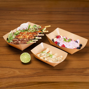 Wegwerp Kraftpapier Fastfood Trays Met Polymelkzuur Coating Reliëf Snackbootbakken Voor Snacks